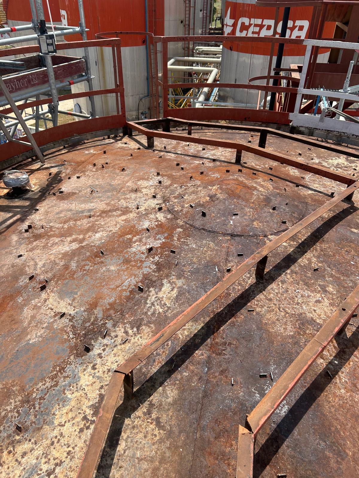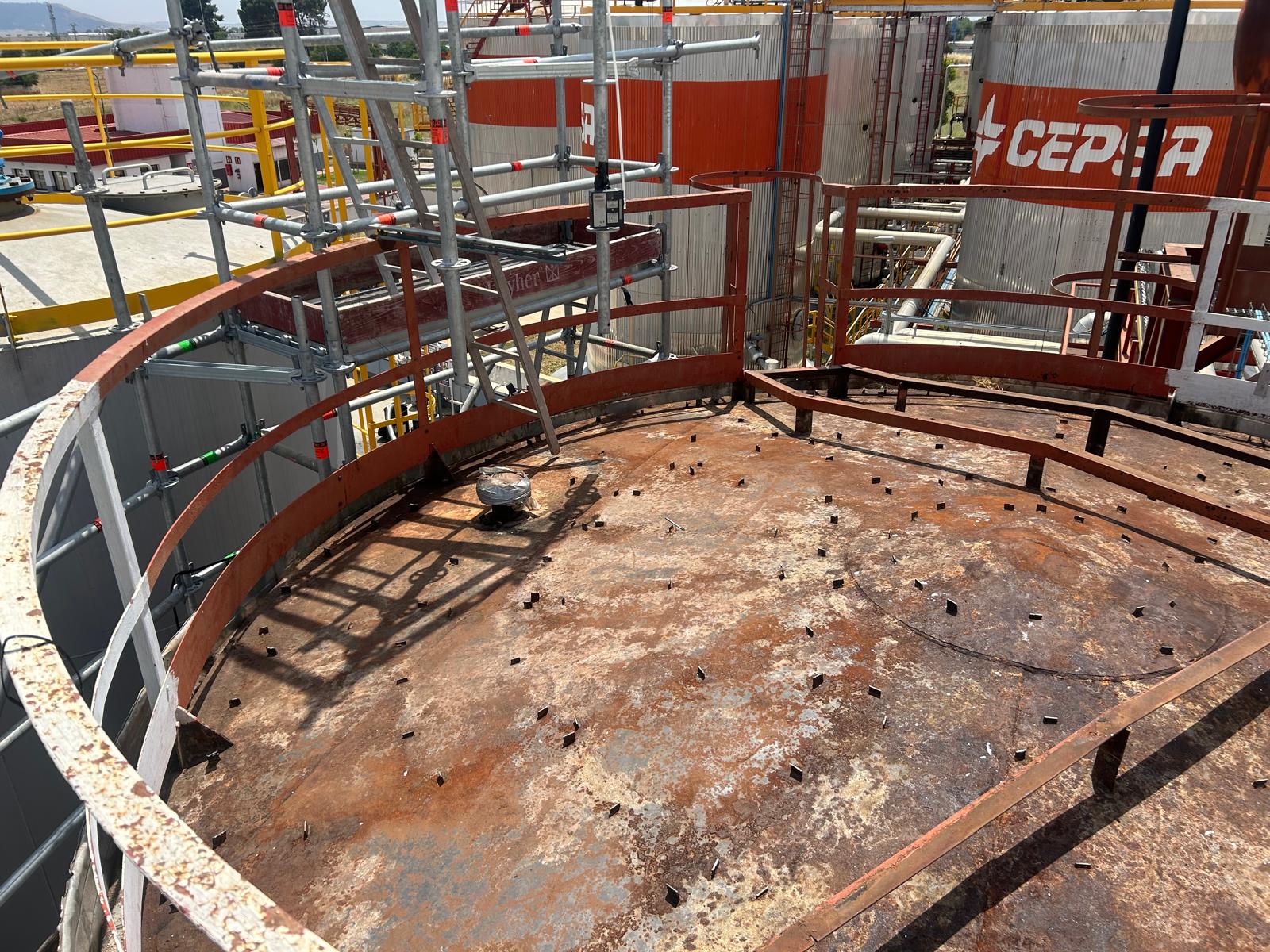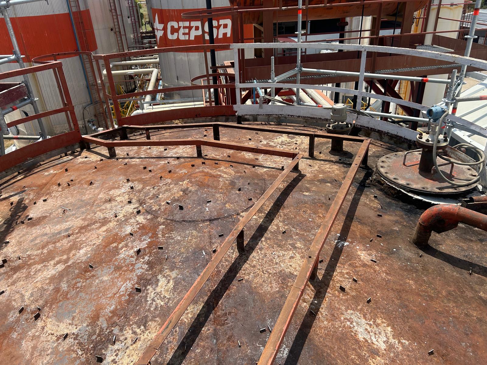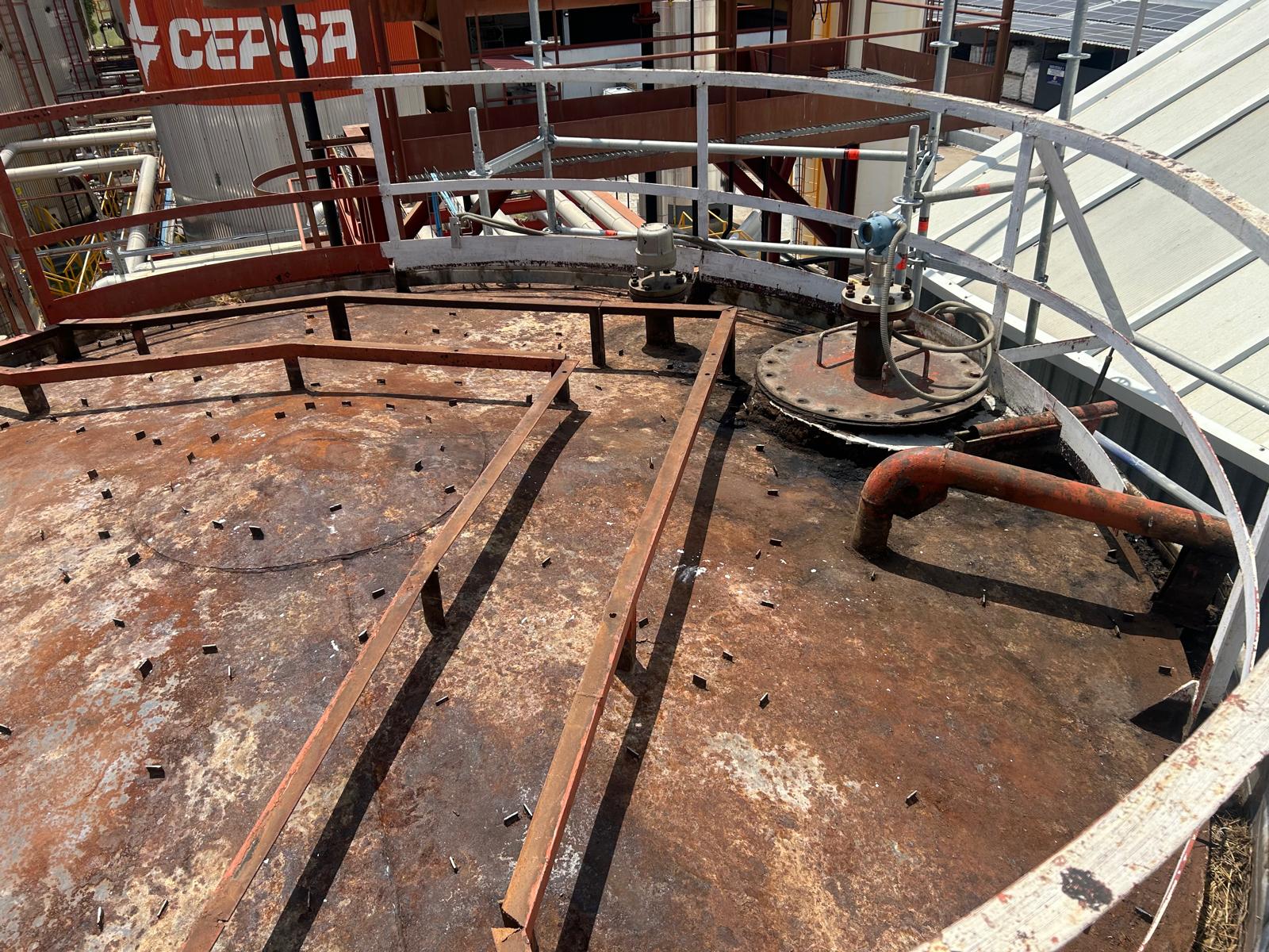 Proyecto de desamiantado de tanques industriales en una planta de asfalto de Cepsa en Madrid, ejecutado en un entorno operativo activo que requería una planificación técnica rigurosa y un control exhaustivo de los riesgos. La intervención incluyó la identificación de materiales con amianto, la elaboración del plan de trabajo conforme al RD 396/2006 y la implantación de sistemas de confinamiento y control ambiental, garantizando la seguridad tanto de los operarios como de la propia instalación.